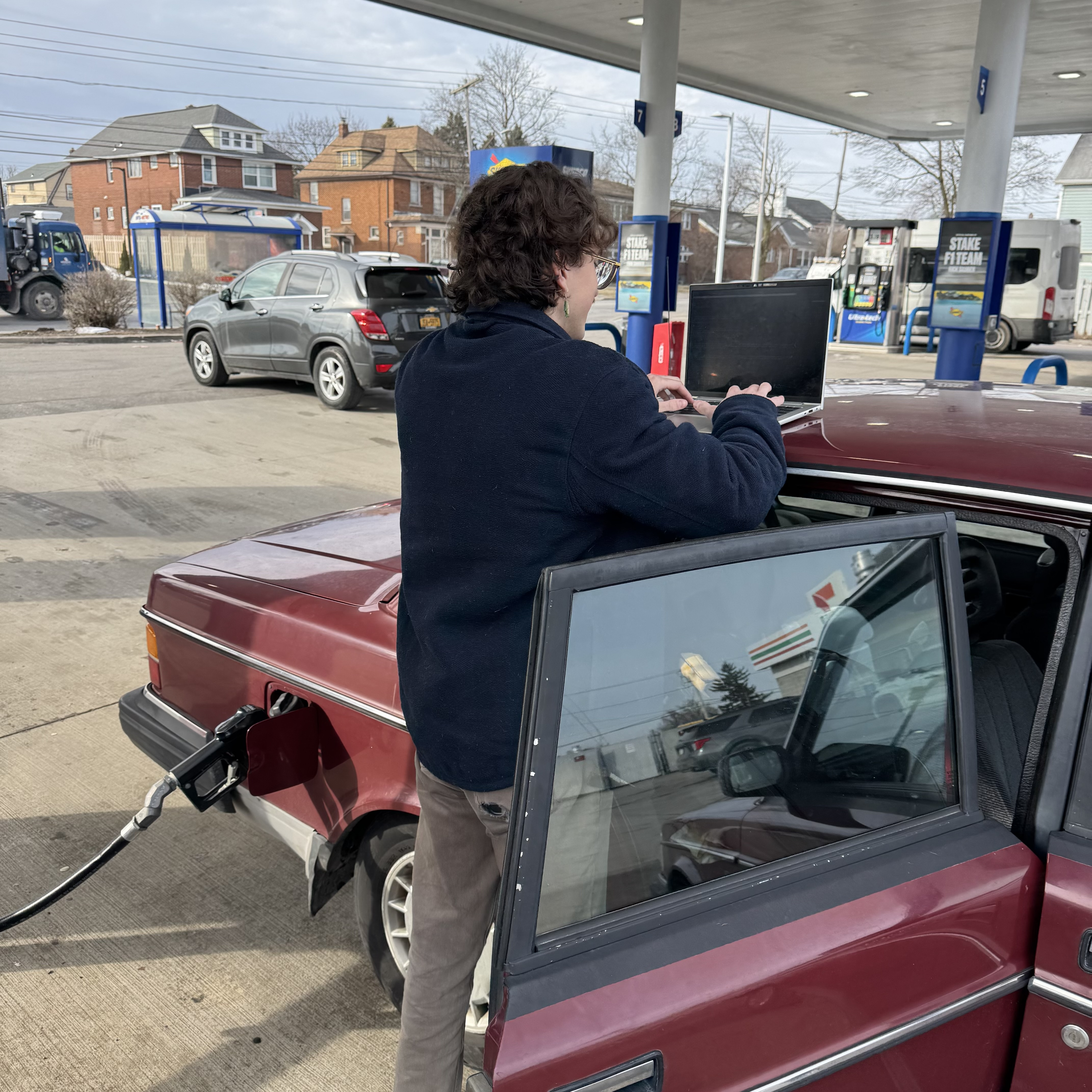 3/01 @ 07.02EST: Highway time! Sticker reads: my other car is a website (vverm.in). If you're reading this on the road, honk!!!